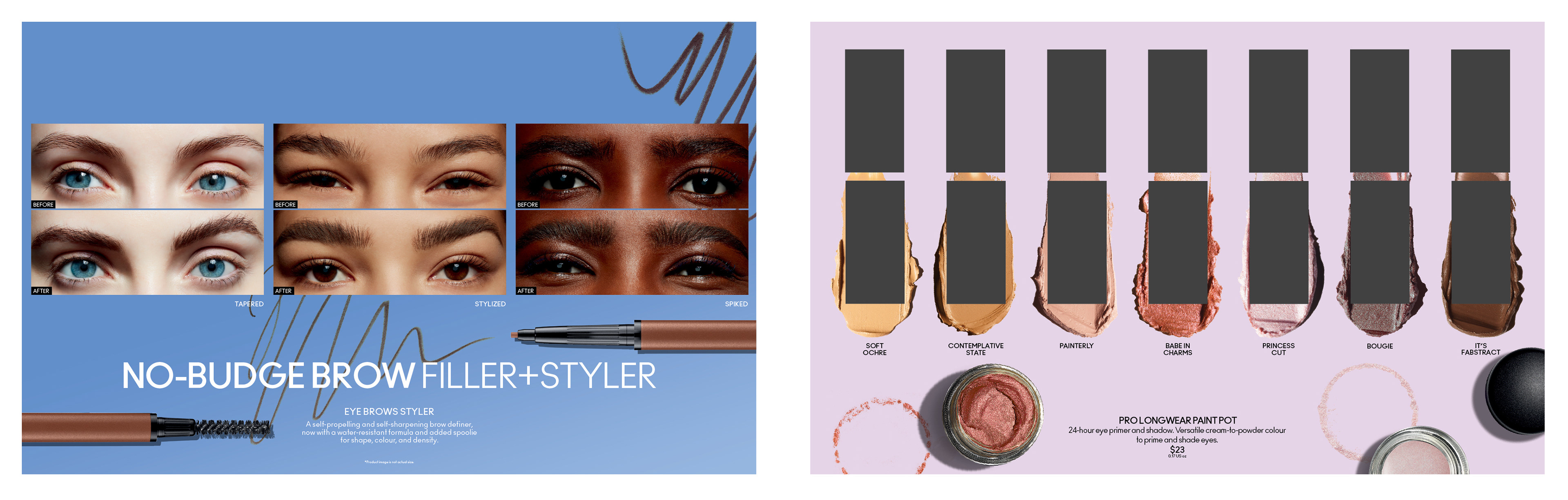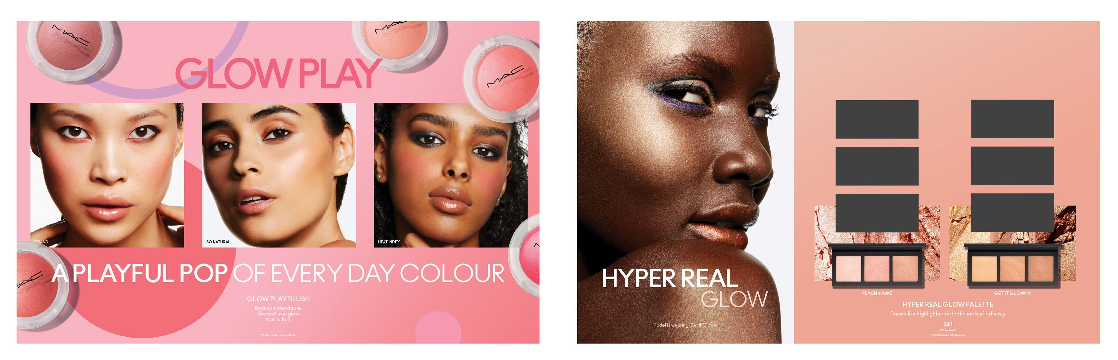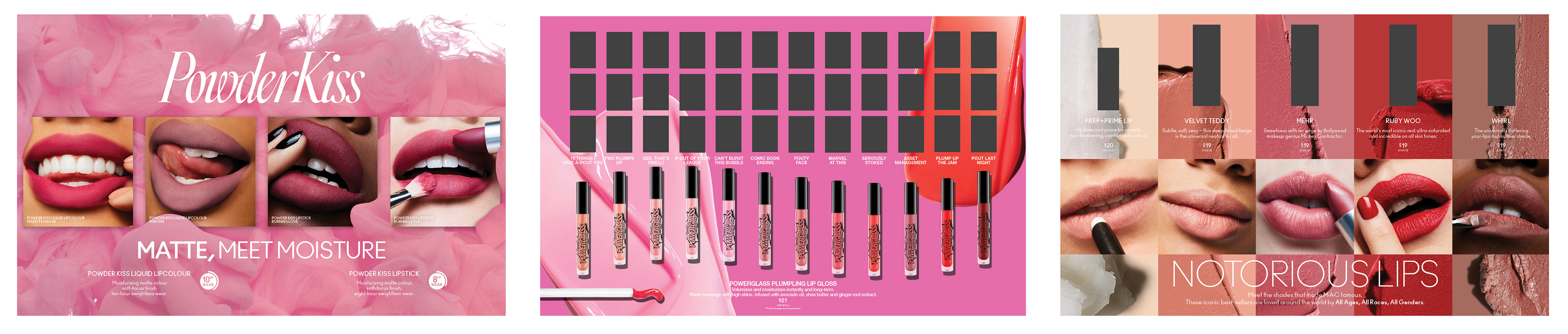 Examples of various toppers featuring lip, eye and face products at Ulta locations with M·A·C boutiques. My roles were design, production and directive updates.